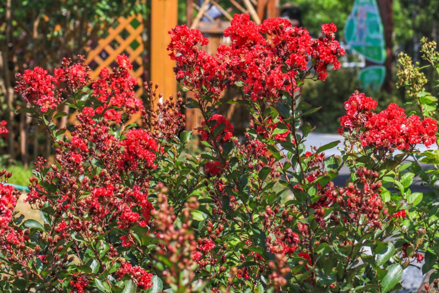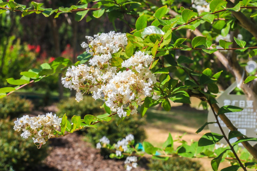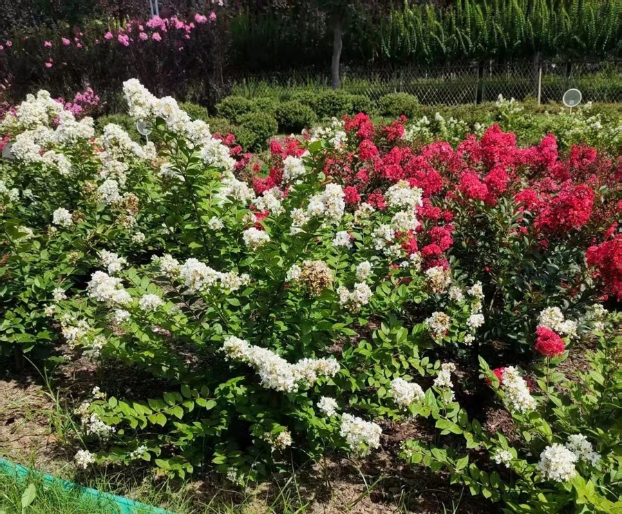上海市绿化管理指导站工程师钟军珺介绍,紫薇园中收集展示了20个品种,其中90%由国内企业自主培育生产,主要包括‘夏日舞娘’‘少女芯’‘紫贵妃’‘英红田园’‘巧克力’‘午夜’等,而‘马斯科吉’和‘天鹅绒’则来自美国。这些品种花期不尽相同,开花较早的有‘田园’系列、‘夏日飞雪’等,晚花品种则有‘夏日舞娘’‘姐妹芯’等。“从6月中上旬到8月中下旬,各个品种都会陆续开花。若进行花期调控,观赏期可持续到10月中上旬。”她说。