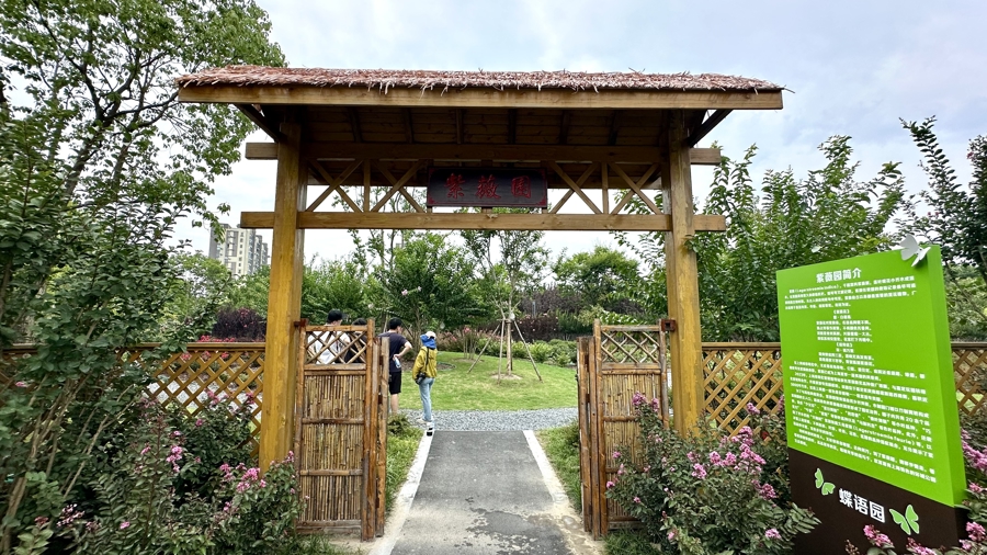 值得一提的是,每个品种上都挂有介绍铭牌和二维码,不少品种在申城街头绿地非常罕见,在这里却可大饱眼福,一园看遍。此外,紫薇园与蝶语园用绿篱分隔,这些绿篱全部由紫薇枝条编成。待到8月,绿篱上将开出娇艳的紫薇花,届时又将是一道美丽的风景线。
