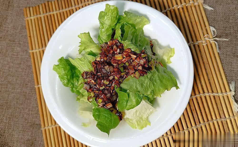 平常我们可以做一点喜欢的调料汁,把生菜用盐水浸泡完后,沥干水分,把它撕成小块,简单拌一拌,就是一道开胃解腻菜。
